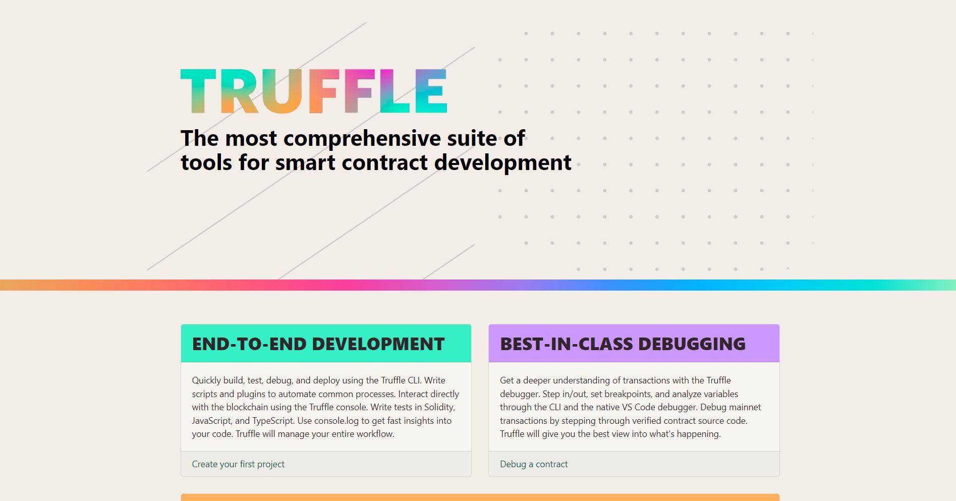 Truffle to jeden z pierwszych frameworków do tworzenia rozwiązań blockchain. Do dziś pozostaje aktualnym narzędziem w branży.