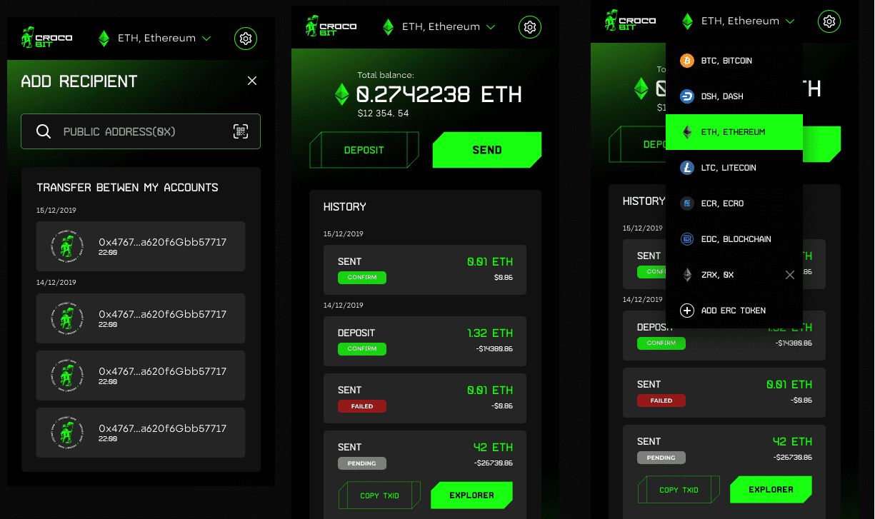 W innym produkcie firmy — Crocobit Extension działa uniwersalne rozszerzenie do zarządzania aktywami w przeglądarce: generowanie portfeli w obrębie rozszerzenia, wysyłka i odbiór kryptowalut przez różne blockchainy, swap krypto w interfejsie, zarządzanie kluczami prywatnymi przez użytkownika oraz obsługa multi-kont.