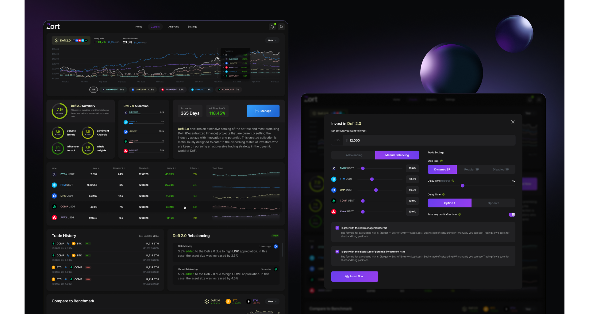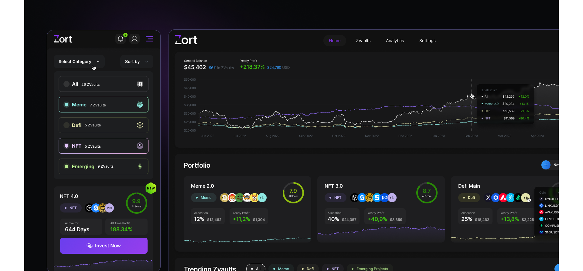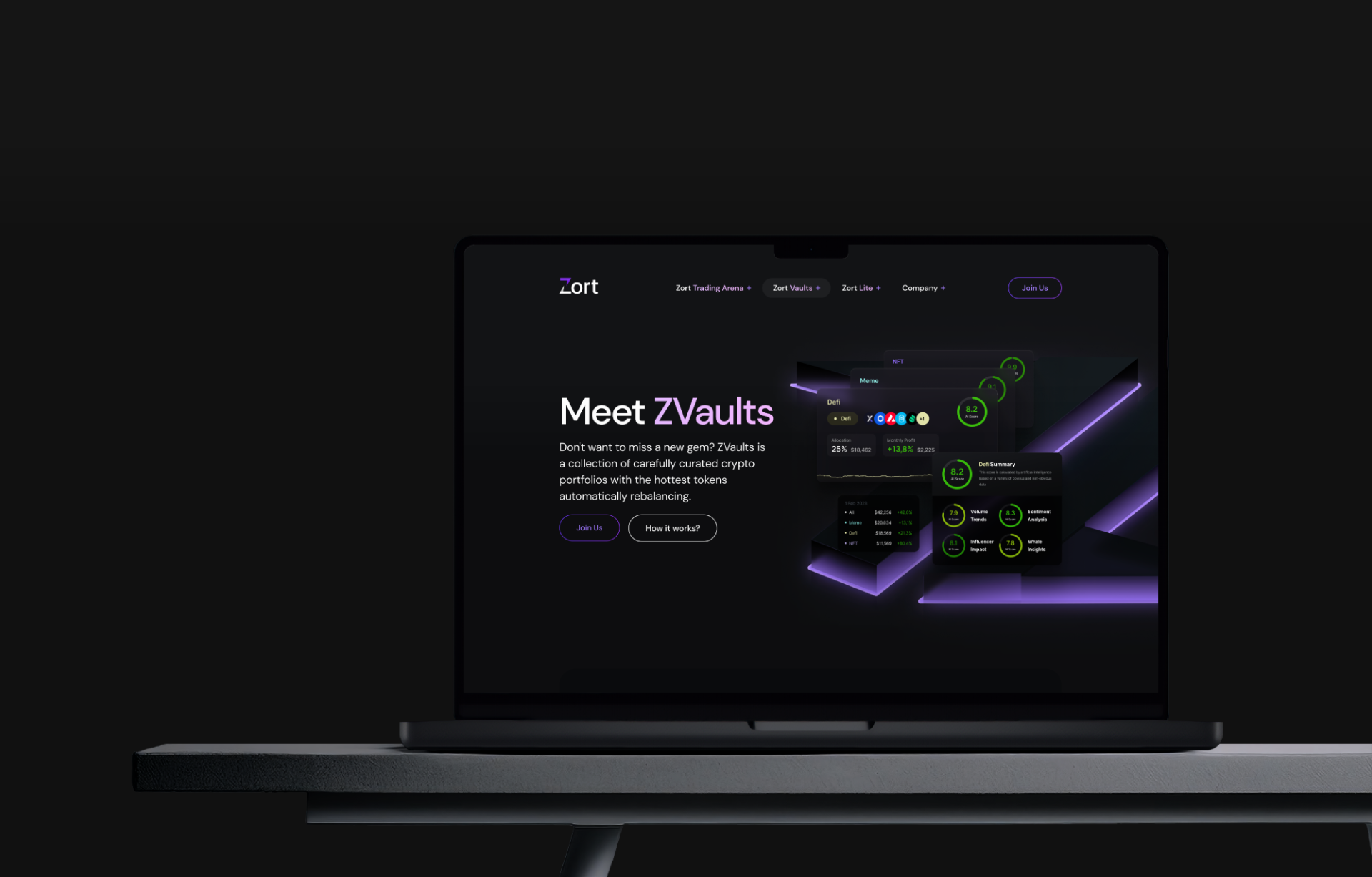 Zort to serwis do zarządzania pulą tokenów oparty na Uniswap. Umożliwia użytkownikowi podłączenie portfela, wybór wcześniej zdefiniowanej puli tokenów (ZVault) oraz automatyczne kupno lub sprzedaż tokenów w określonych proporcjach. Koncepcja ma na celu uproszczenie procesu tworzenia i zarządzania portfelami inwestycyjnymi w DeFi.