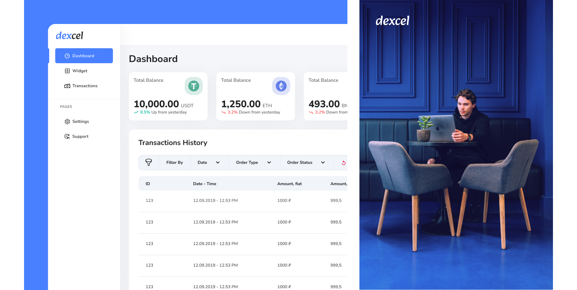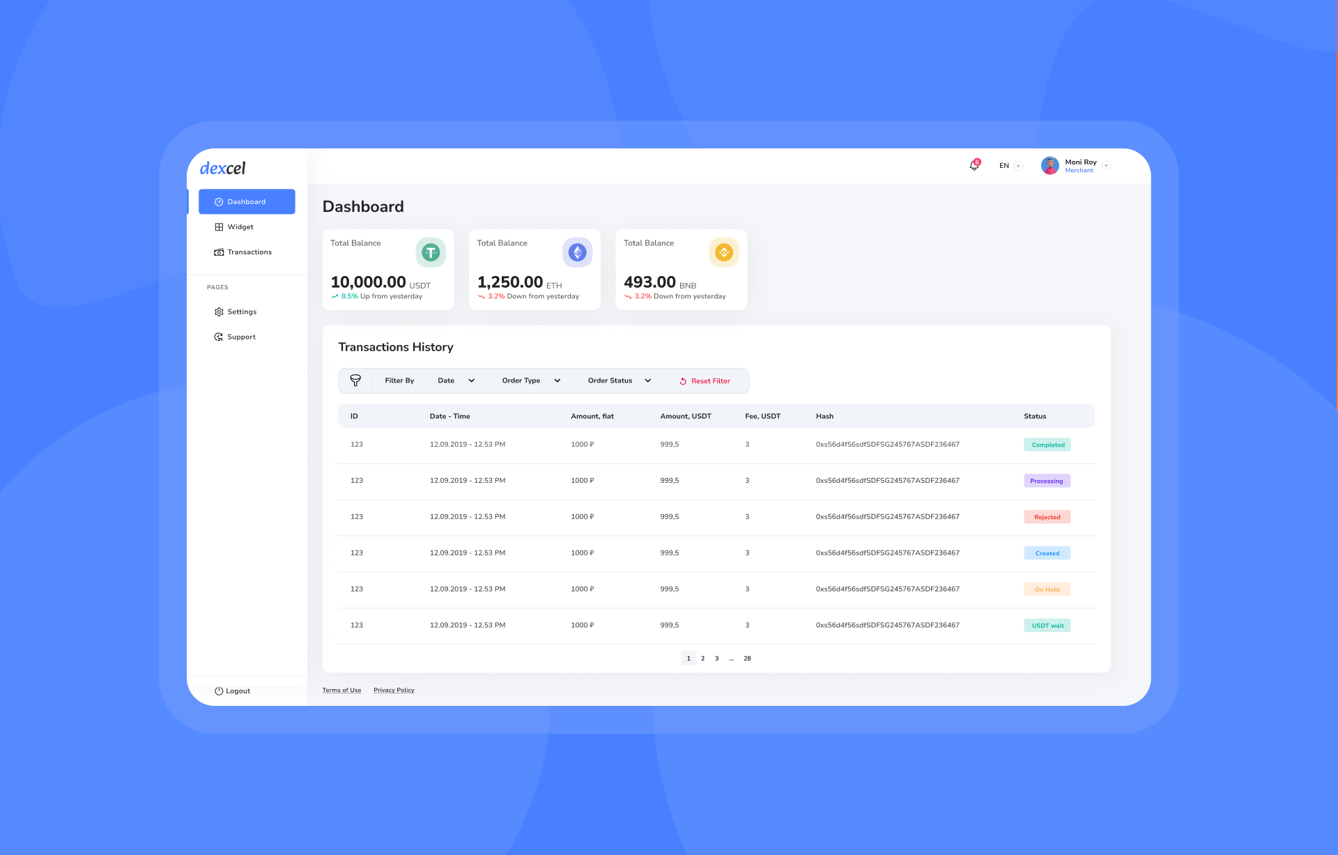 System kryptoprocessingu DEXEL: przyjmowanie płatności w USDT przez osadzany widget, automatyczny dobór tradera P2P oraz rezerwacja danych płatniczych, potwierdzanie fiata (SMS/Push), wysyłka USDT, monitoring blockchaina, prowizje, panel administracyjny, API i webhooki. Cистема криптопроцессинга DEXEL: прием платежей в USDT через встраиваемый виджет, автоматический подбор P2P-трейдера и резерв реквизитов, подтверждение фиата (SMS/Push), отправка USDT, мониторинг блокчейна, комиссии, админ-панель, API и webhooks.