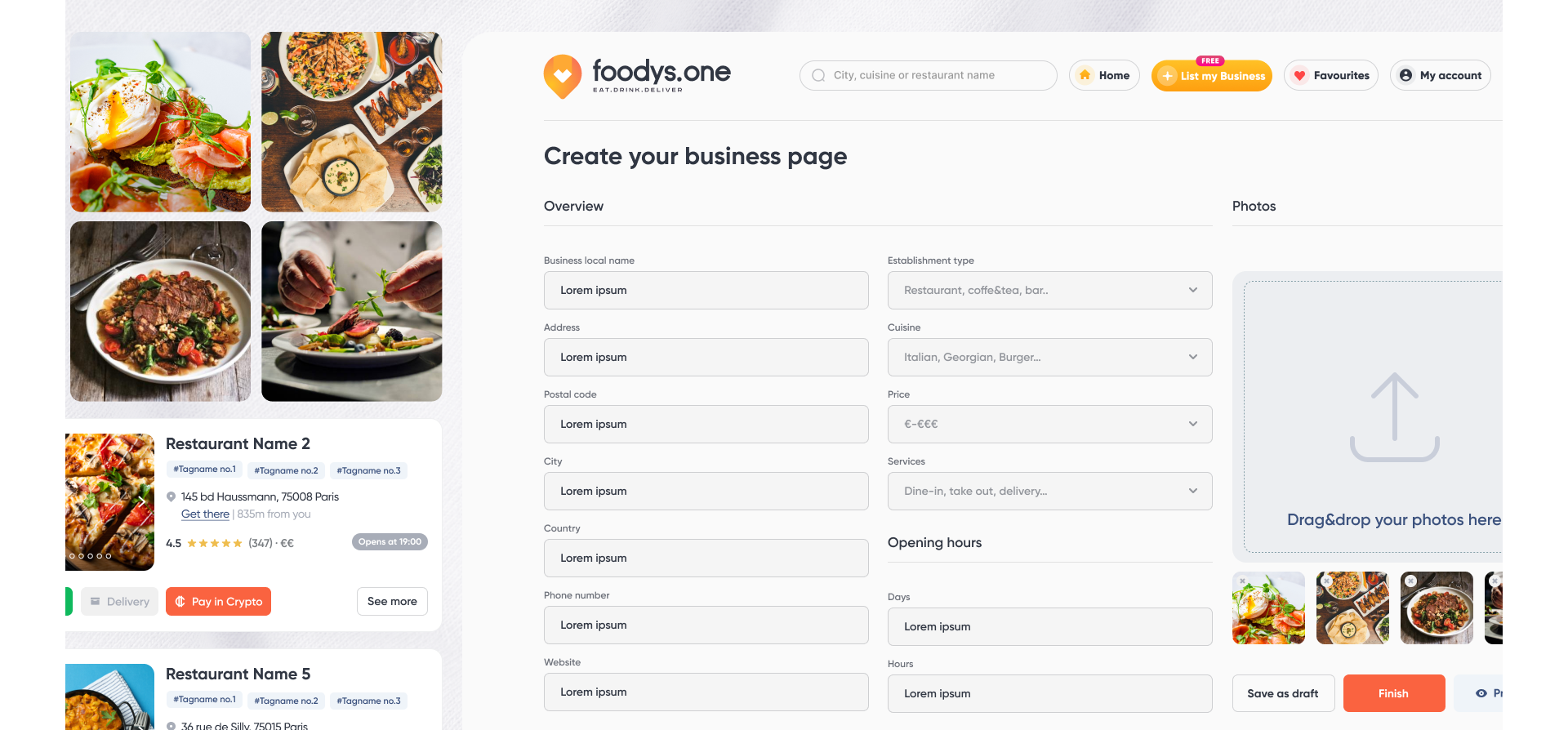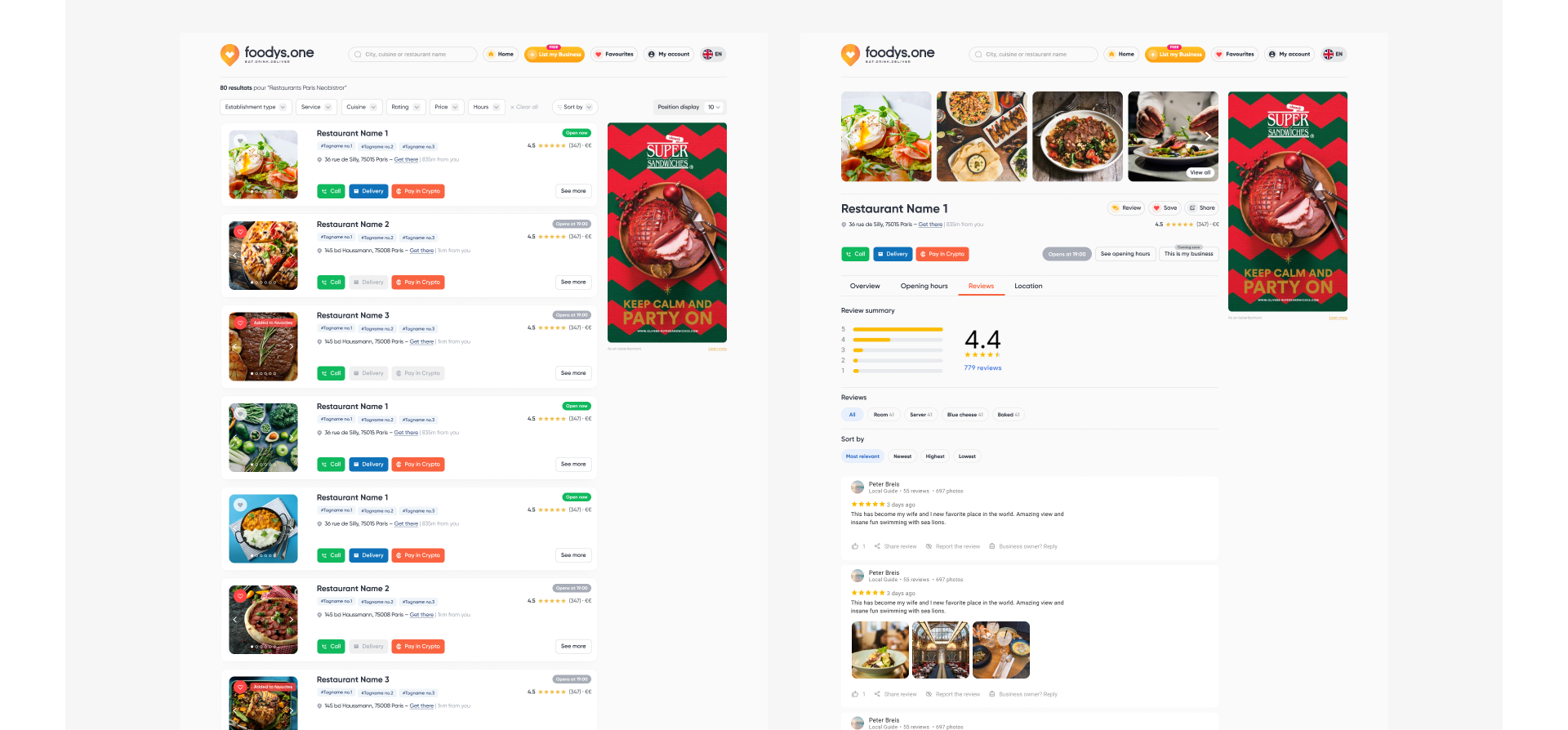 Opracowanie w pełni funkcjonalnej strony-katalogu restauracji z możliwością: Wyszukiwania według trafności i odległości Dodawania do ulubionych Dodawania opinii (przez użytkowników, którzy przeszli rejestrację) Integracji z systemem płatnych numerów Optico Dostosowania do urządzeń mobilnych Wielojęzycznego interfejsu (EN, FR)
